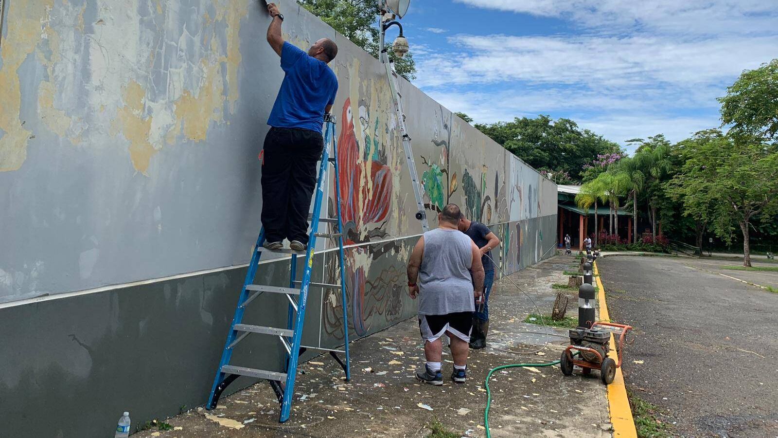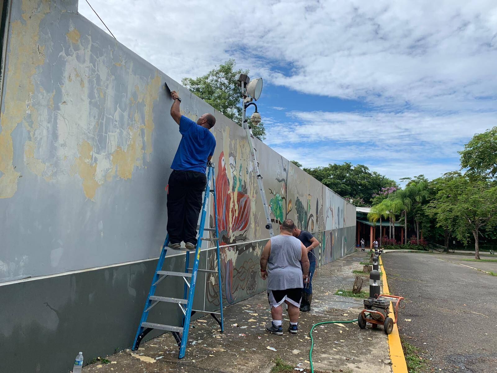 Desde el pasado sábado, brigadas de voluntarios realizan un enorme mural de bienvenida a los visitantes del zoológico de Mayagüez, Zoológico de Puerto Rico Dr. Juan A. Rivero, que está próximo a cumplir dos años de clausura.
