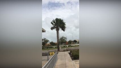 El momento es capturado cuando Melbourne, Florida, es golpeada por fuertes ráfagas del huracán Dorian el martes (3 de septiembre), que sopla las palmeras en jarras.