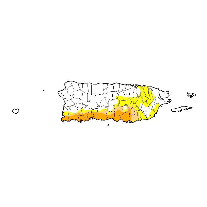 De acuerdo con el mapa presentado por la entidad, los 16 pueblos con partes del terreno bajo sequía severa son Cabo Rojo, Lajas, Guánica, Yauco, Sabana Grande, Guayanilla, Peñuelas, Ponce, Juana Díaz, Coamo, Aibonito, Salinas, Santa Isabel, Cidra, Cayey y Guayama.