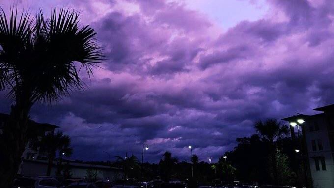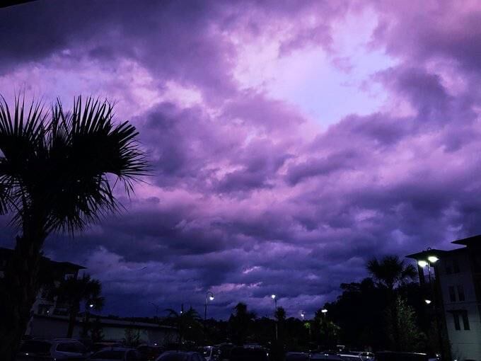 El fenómeno, que se dio al atardecer, tiende a ocurrir tras el paso de un huracán. Según explica CNN, el paso del huracán Dorian dispersó las moléculas de luz solar, que dan el tono azul al cielo durante el día, en una longitud de onda tan larga que las cámaras captaron el color morado.