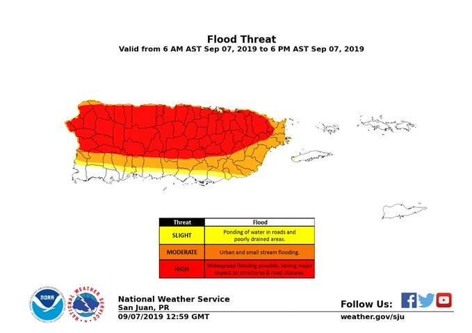 El NWS también avisó que estos aguaceros se moverán lentamente, por lo que existe un potencial alto de inundaciones urbanas y de pequeños riachuelos, al igual que ocurran golpes de agua en los ríos y deslizamientos en áreas de terrenos altos.