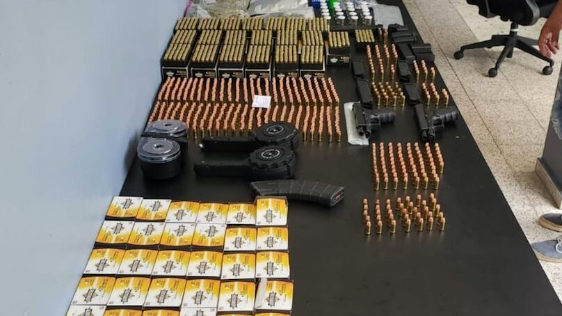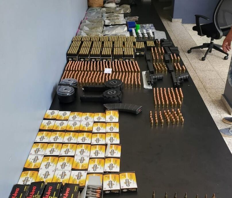 Durante el allanamiento, detalló la Policía, a estos supuestamente se les ocupó 886 municiones calibre 7.62, 766 municiones calibre 223, unas 1,838 municiones calibre .40, 7 municiones calibre 45, dos tambores de municiones calibre .40, un tambor doble de municiones calibre .223, un cargador de 30 calibre 7.62, dos pistolas marca Glock, modelo 23 calibre .40, siete cargadores de municiones .40 y un cargador de municiones calibre 357.