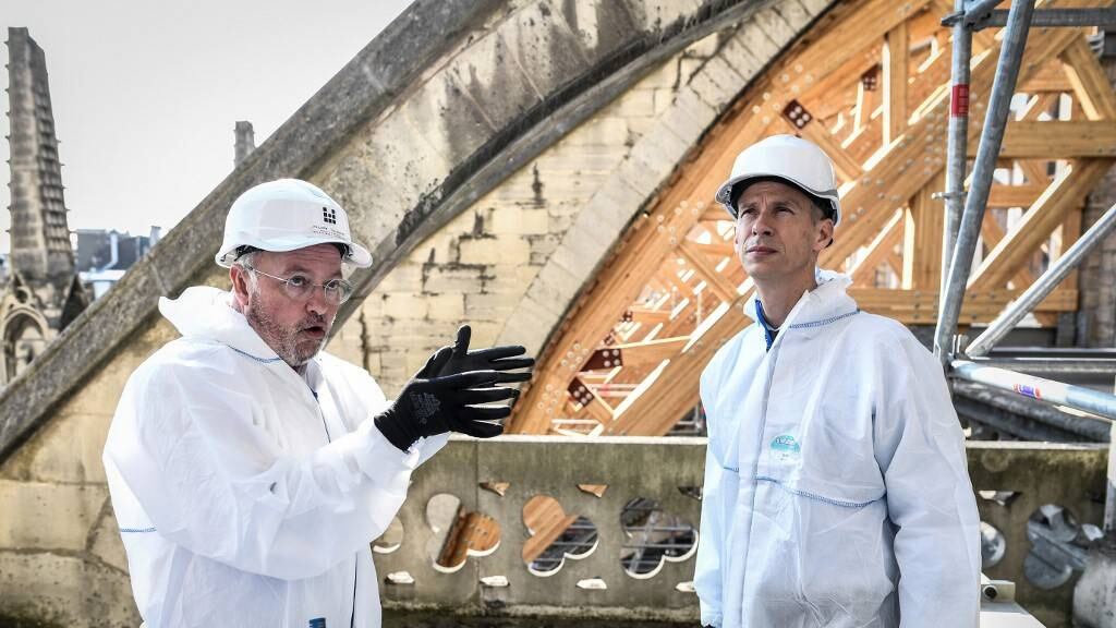 “El monumento sigue en peligro en dos niveles: las bóvedas que aún pueden caerse y los andamios que pueden derrumbarse. No es algo pequeño… Hay entre 200 y 300 toneladas de acero”, señaló el arquitecto jefe de la catedral, quien antes del incendio del 15 de abril había iniciado la restauración de la aguja que se derrumbó en el siniestro.