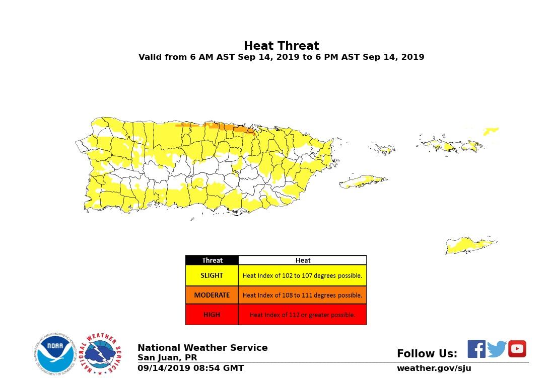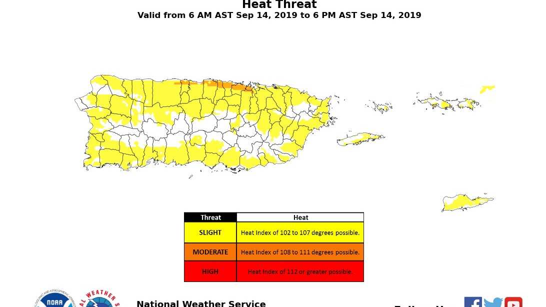 Según el NWS, los índices de calor estarían entre los 108 y los 112 grados Fahrenheit para el “norte central y área metro de San Juan”. Según el mapa compartido por la agencia, los pueblos afectados serían: