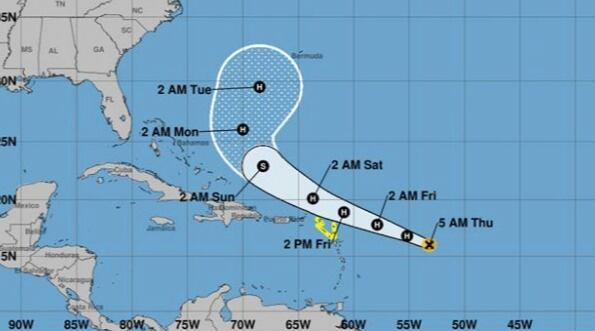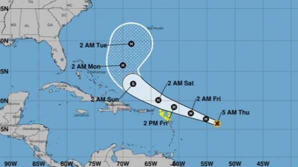 En el boletín de las 5:00 de la mañana, la tormenta luce bastante organizada, indicio de que se está fortaleciendo. La misma continúa lejos de la zona y se mantiene al este de las Anillas Menores.