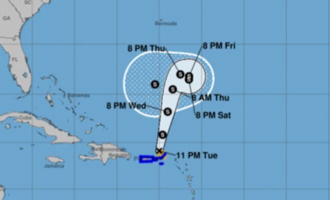 En la trayectoria pronosticada, el centro de Karen se alejara de Puerto Rico y las Islas Virgenes durante las próximas horas, pero los aguaceros fuertes que están al sur del centro continuarán afectando el área durante la noche.
