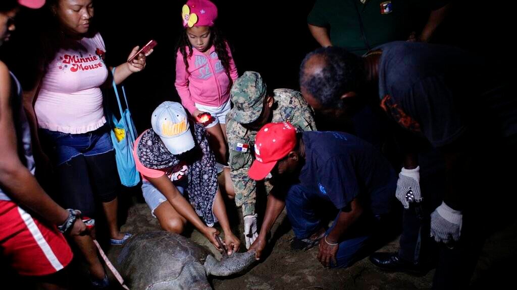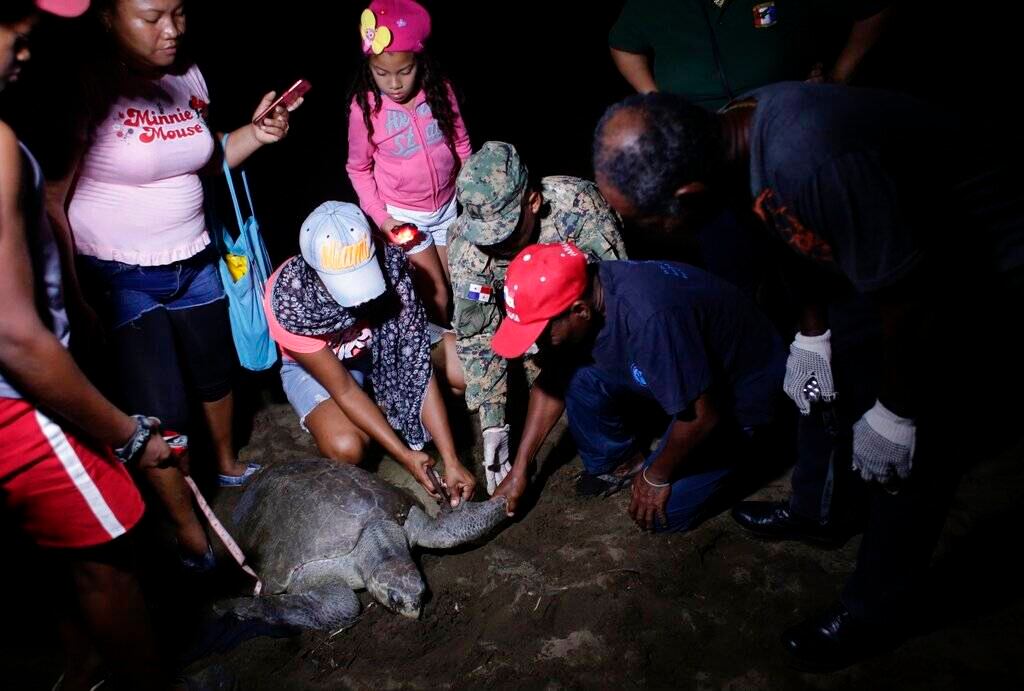 JAQUÉ, Panamá – Cada anochecer, Iver Valencia sale con un grupo de aldeanos provistos con linternas a caminar por la orilla de la playa panameña con una misión: encontrar nidos donde las tortugas depositan sus huevos para llevarlos a un vivero y alejarlos de los depredadores.