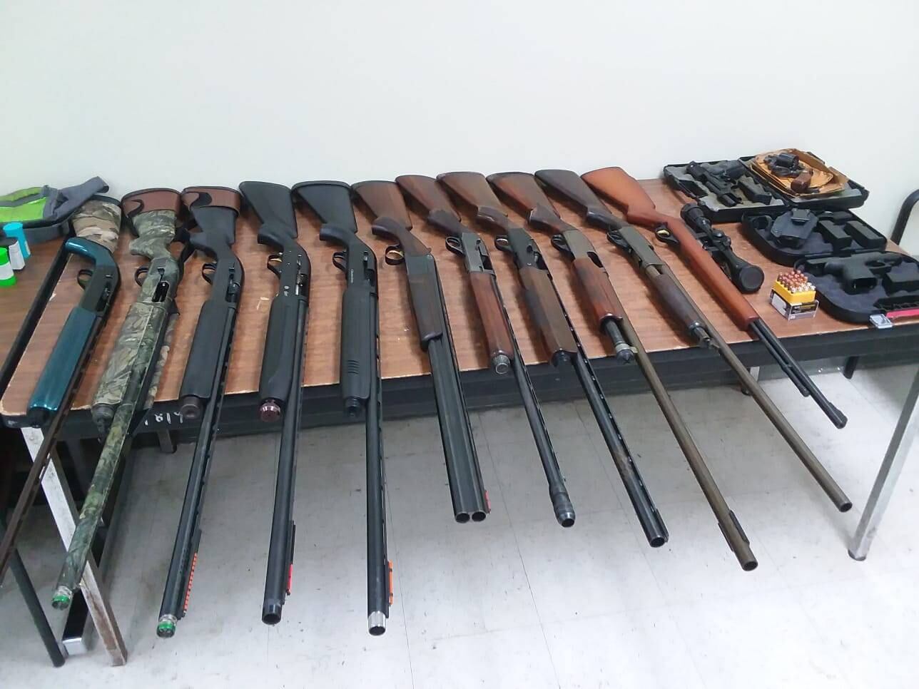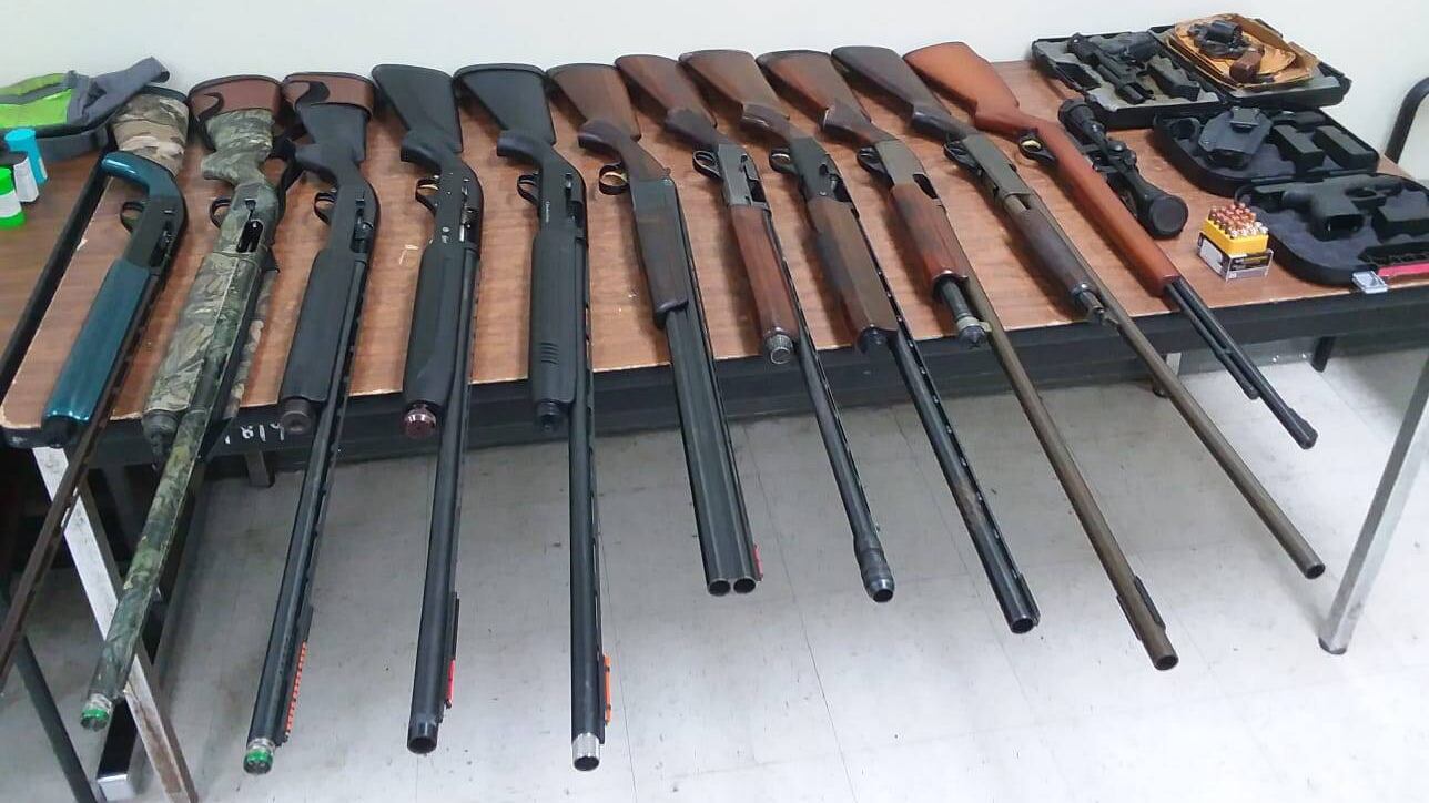 Además, como parte de la investigación, se ocuparon en la residencia 14 armas de fuego, desglosadas como siguen: 10 escopetas, un rifle, dos pistolas, un revolver, cuatro cargadores y 20 municiones calibre 9mm. Estas armas de fuego estaban inscritas con licencia, pero se ocuparon porque en la residencia se cometió un delito.