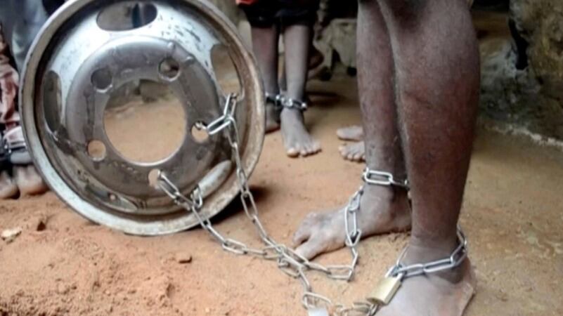 La mayoría de los niños y jóvenes tenían los tobillos encadenados; otros estaban atados a pesados aros de neumáticos para evitar que se escaparan. Los cautivos relataron a los medios locales que habían sido abusados sexualmente.