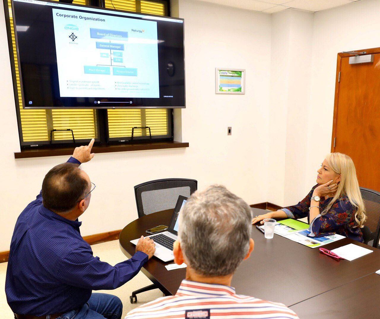 EcoEléctrica, que ayer se informó esta funcionando a 50 % de su capacidad, bajo condiciones normales genera hasta 507 megavatios. Tras los apagones de la semana pasada, que, en un momento dado, según la AEE, dejaron sin luz a más de 100,000 abonados, Vázquez y Ortiz visitaron ayer las instalaciones de EcoEléctrica, en Peñuelas.