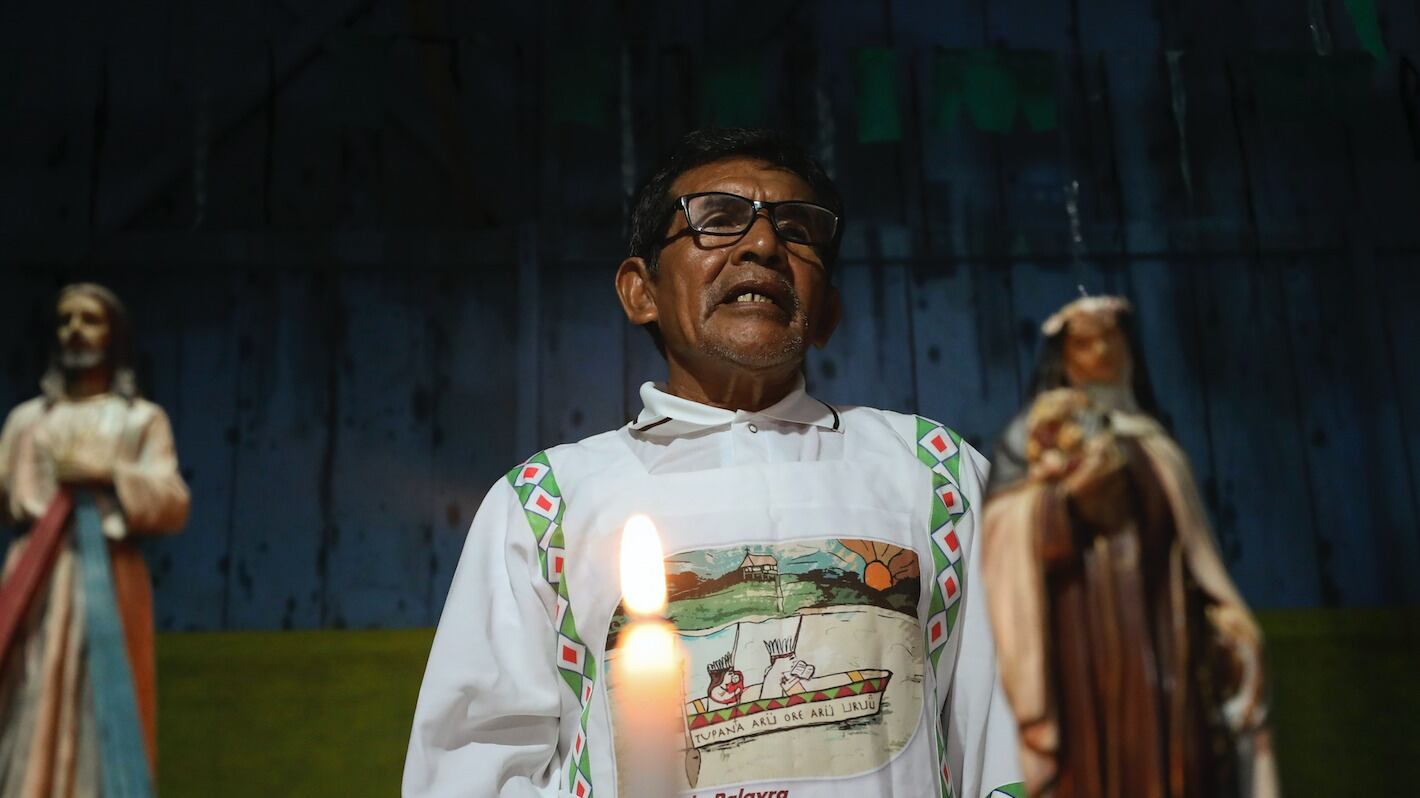 SANTA ROSA, Brasil (AP) — Una madrugada en esta pequeña aldea indígena, Antelmo Pereira convoca a los católicos de la zona a rezar, se coloca una bata blanca y encabeza un oficio religioso que es lo más cercano que los creyentes de este remoto rincón de la Amazonía tienen a una misa.