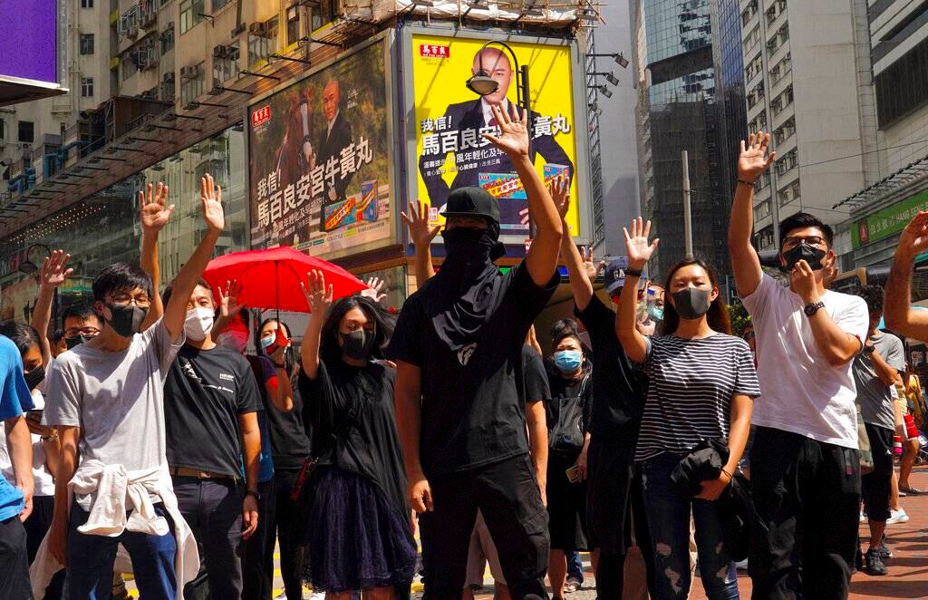 Miles de manifestantes enmascarados empezaron a marchar por el distrito comercial antes de la conferencia de Lam. Por la noche crecieron las protestas y los manifestantes juraron que no se dejarán intimidar. Algunos quemaron una bandera china, cerraron calles con rejas metálicas, provocaron destrozos en dos estaciones del metro y prendieron fogatas en las calles.