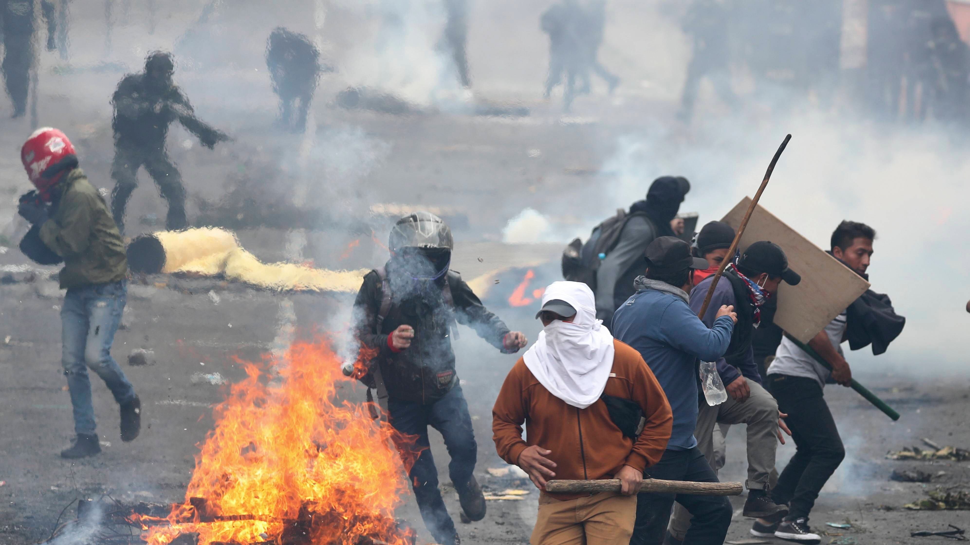 Cientos de manifestantes, muchos encapuchados, se han apoderado el sábado de diversos sectores de la capital y en áreas periféricas, paralizando calles y atacando a mansalva a vehículos particulares, mientras los indígenas se mantienen congregados en rechazo a la elevación de los precios de los combustibles decretada a inicios de mes.