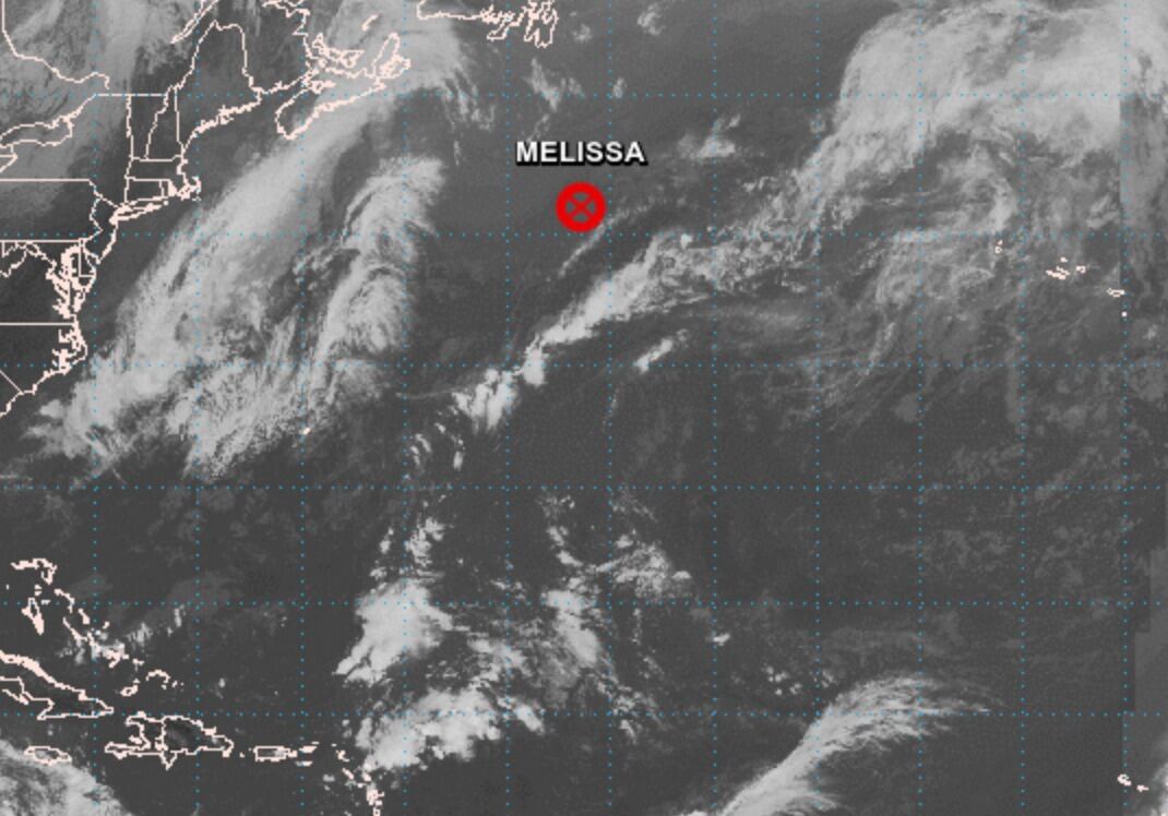 Meteorólogos dijeron que hasta el mediodía del lunes, Melissa estaba a 650 kilómetros (405 millas) al sur-sureste de Cape Race, Newfoundland, Canadá, con vientos máximos sostenidos debilitados a 65 km/h (40 mph).