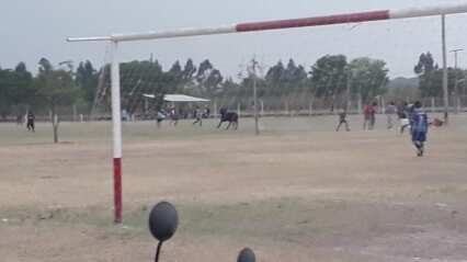 Un toro fugitivo ingresó contra un campo de fútbol y atacó a los espectadores en Argentina.