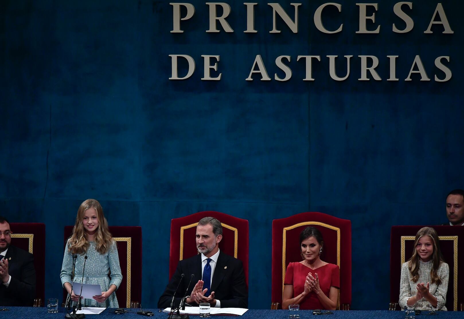 “Estamos aquí para rendiros homenaje,” dijo la joven heredera con voz firme y sonriéndole a los galardonados, a quienes agradeció por “fomentar la cultura y la ciencia” o “preservar la naturaleza y reducir las injusticias”.