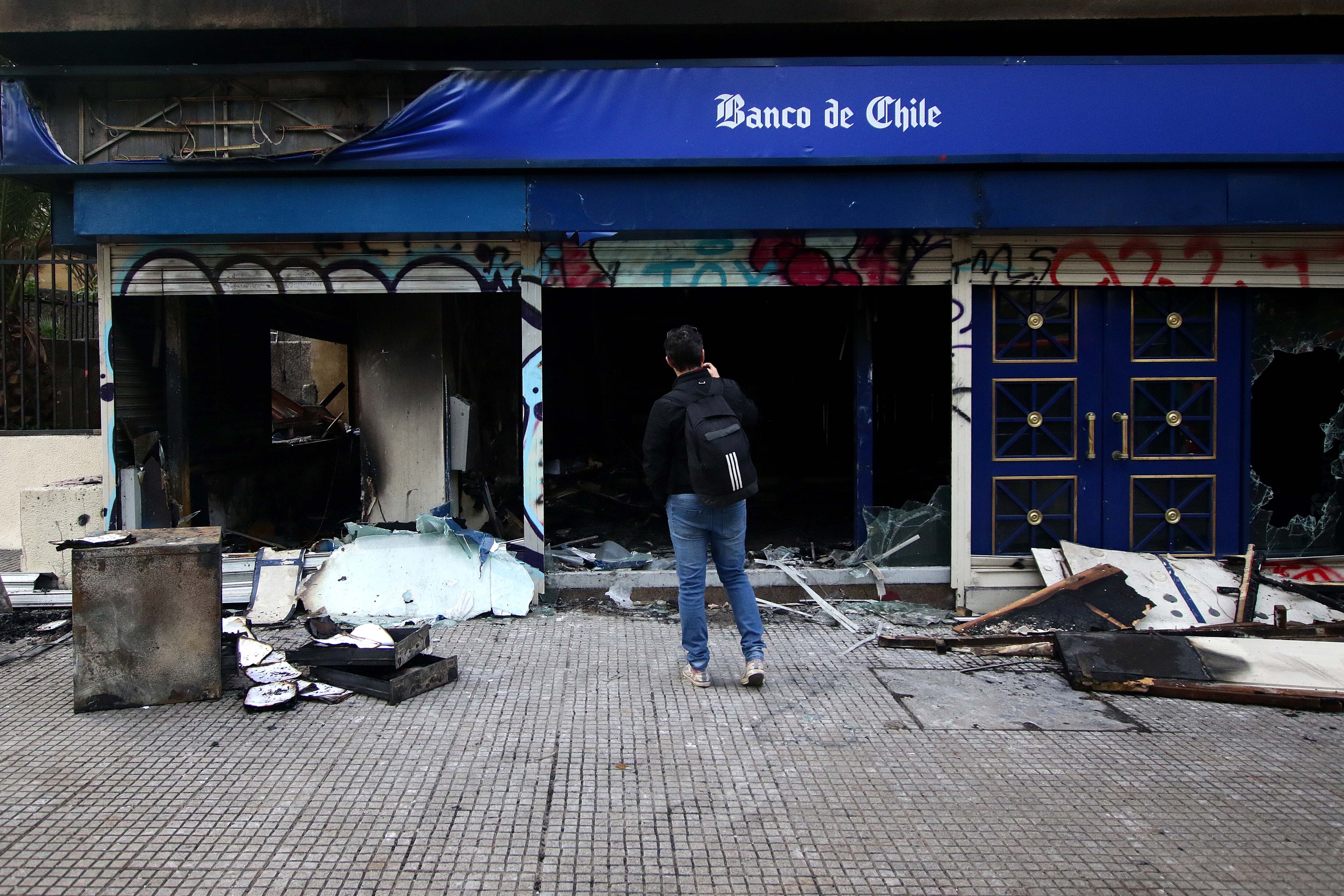 Lo que comenzó con las evasiones masivas ayer terminó conc de 20 estaciones de Metro destruidas, varios buses quemados, señaléticas en los suelos e incluso un incendio en la torre corporativa de Enel.