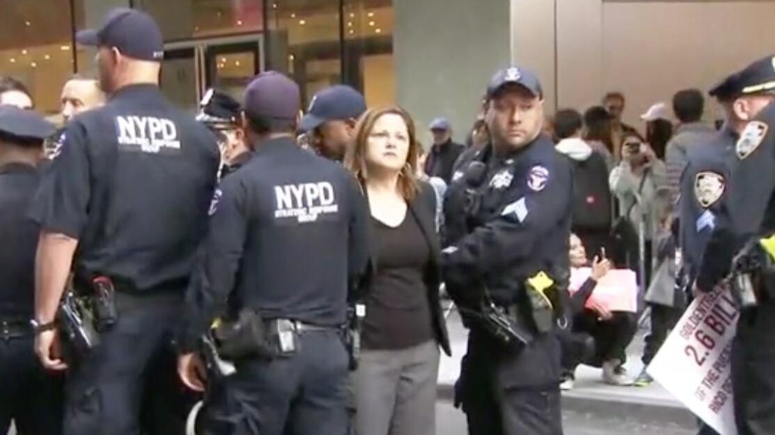La candidata al escaño del Distrito 15, Melissa Mark-Viverito fue arrestada hoy en medio de una manifestación para exigir el despido de Steven Tananbaum de la Junta Directiva del MoMA.