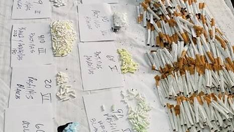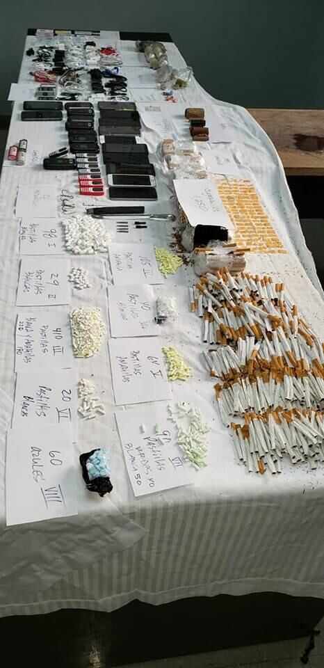 Según las fotos, ocuparon cigarrillos, encendedores, celulares inteligentes, celulares compactos y cargadores.