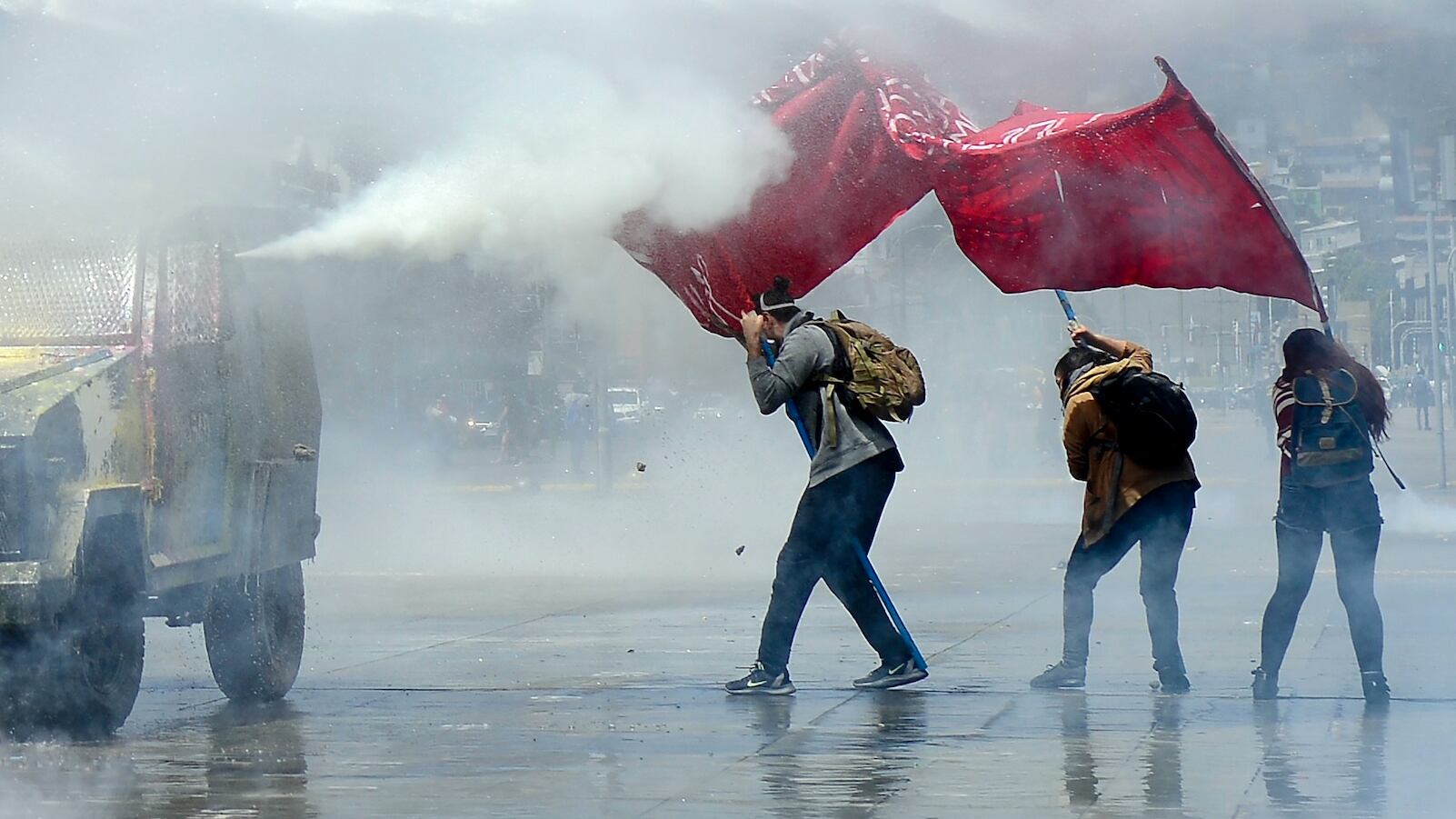 A la sede del Legislativo, ubicada en el vecino puerto de Valparaíso, llegaron los manifestantes que fueron violentamente dispersados con gases lacrimógenos.