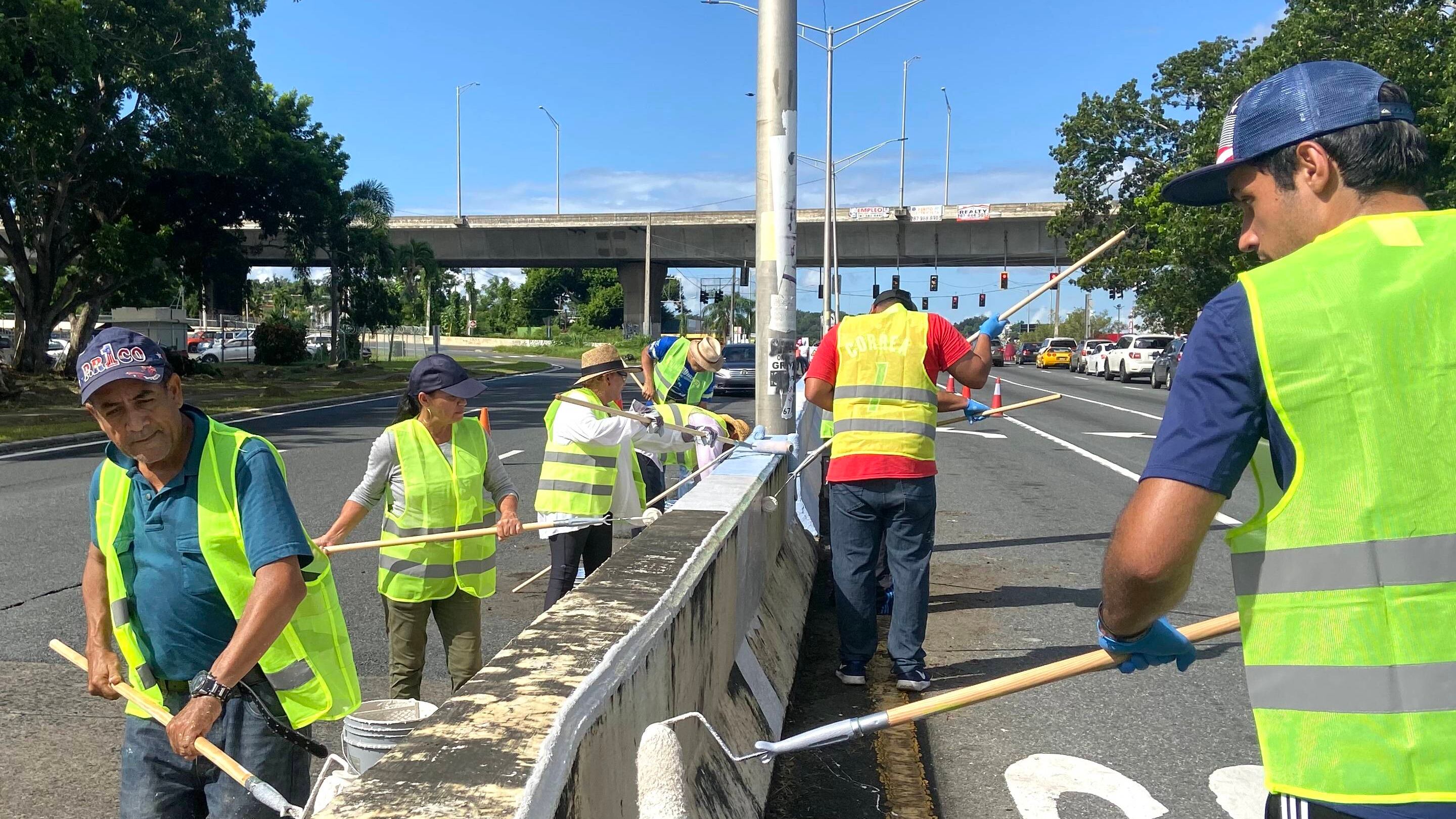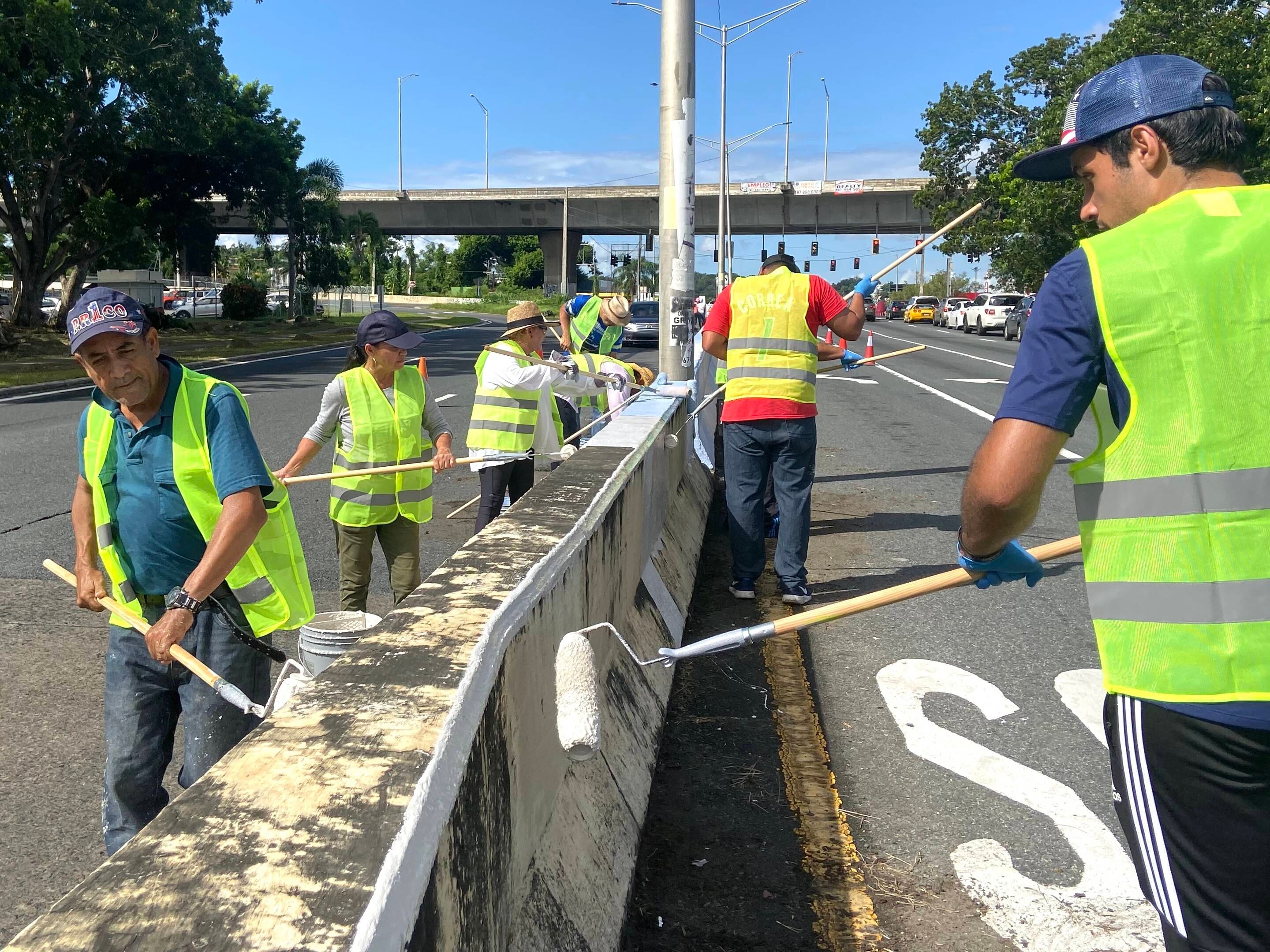 Un grupo de voluntarios y empleados de la Cámara se unieron para limpiar y pintar un tramo de la avenida 65 de infantería en Río Piedras, cerca de los elevados hacia Trujillo alto.