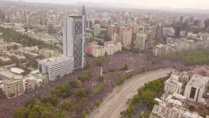 De forma pacífica se desarrolló la marcha, que se dio en medio de la crisis social que estalló hace una semana en Santiago, con evasiones masivas en el pago del pasaje del Metro, que subió 30 pesos luego de que un panel de expertos aconsejara dicha medida.