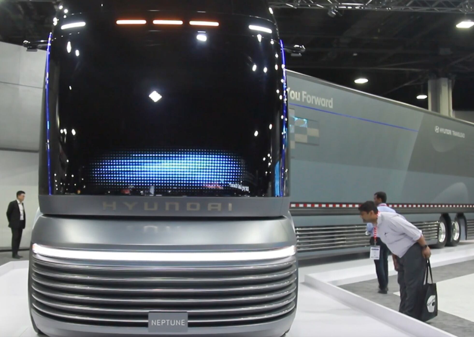 Hyundai presentó el lunes el prototipo de camión de hidrógeno HDC-6 Neptune en la Exposición de Vehículos de América del Norte en Atlanta.