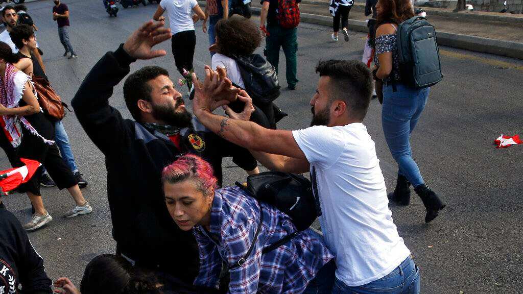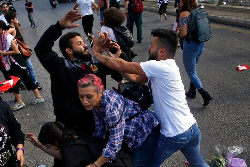 El enfrentamiento ocurrió en una avenida que une al oriente con el occidente de Beirut. Mientras crecía la multitud molesta, algunos utilizaron palos para hacer retroceder a los manifestantes que estaban sentados sobre el asfalto.