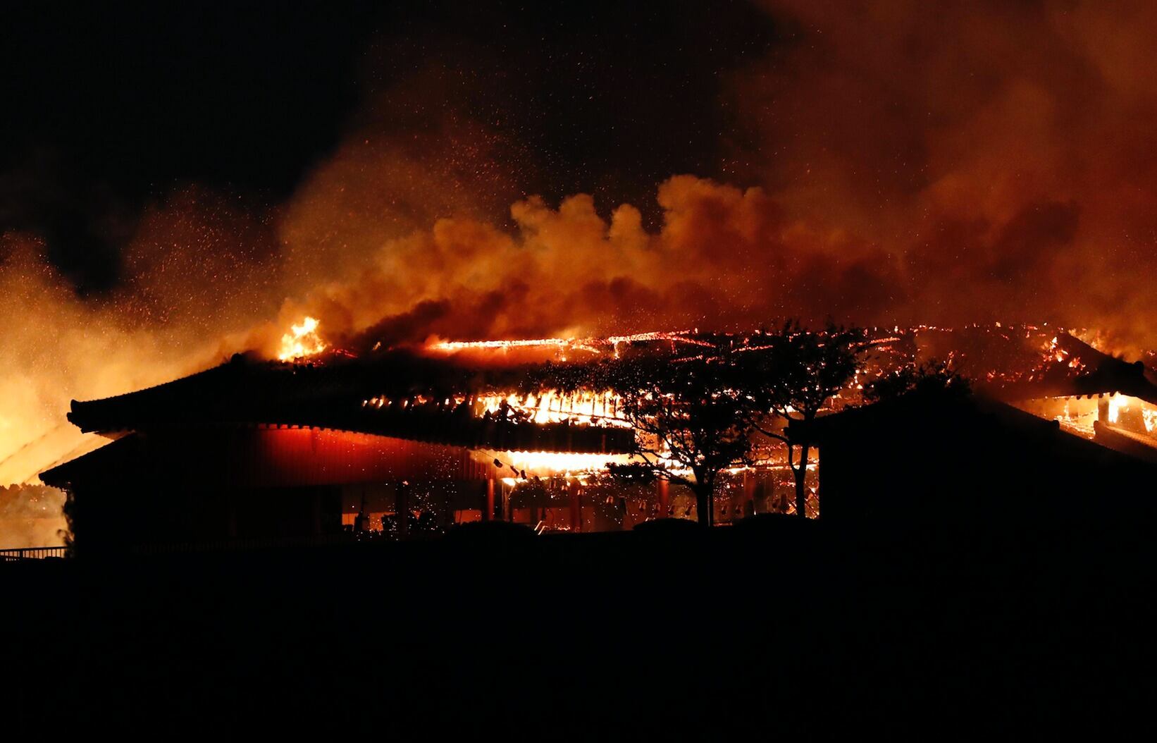 El incendio en Naha, la capital de la prefectura Okinawa, comenzó por la mañana en la estructura principal del castillo. El templo principal, “Seiden”, y la estructura “Hokuden”, o sala norte, quedaron totalmente calcinados. Una tercera estructura, “Nanden” o sala sur, está a punto de quedar destruida, indicó Kochi.