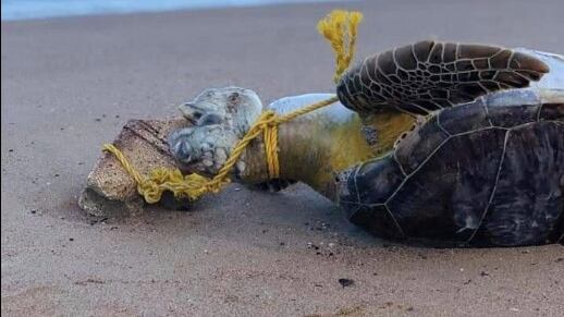 En hechos que están siendo investigados por el Cuerpo de Vigilantes del Departamento de Recursos Naturales y Ambientales (DRNA), una tortuga carey fue encontrada sin vida y amarrada aun bloque en la playa Córcega de Rincón.