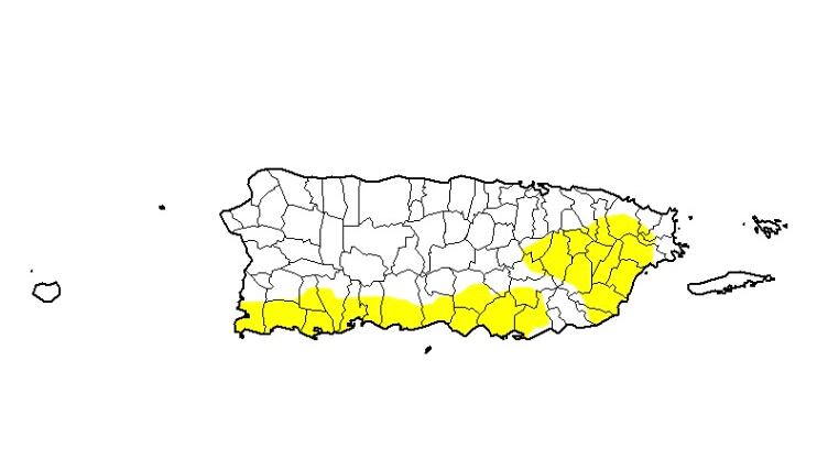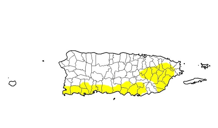 De acuerdo con el mapa de la entidad, los municipios bajo este nivel de sequía son Cabo Rojo, Lajas, San Germán, Sabana Grande, Guánica, Yauco, Guayanilla, Peñuelas, Ponce, Juana Díaz, Coamo, Santa Isabel, Salinas, Aibonito, Cayey y Guayama. A ellos se le sumó más de una docena de pueblos de la zona central y hacia el este y sureste de la isla.