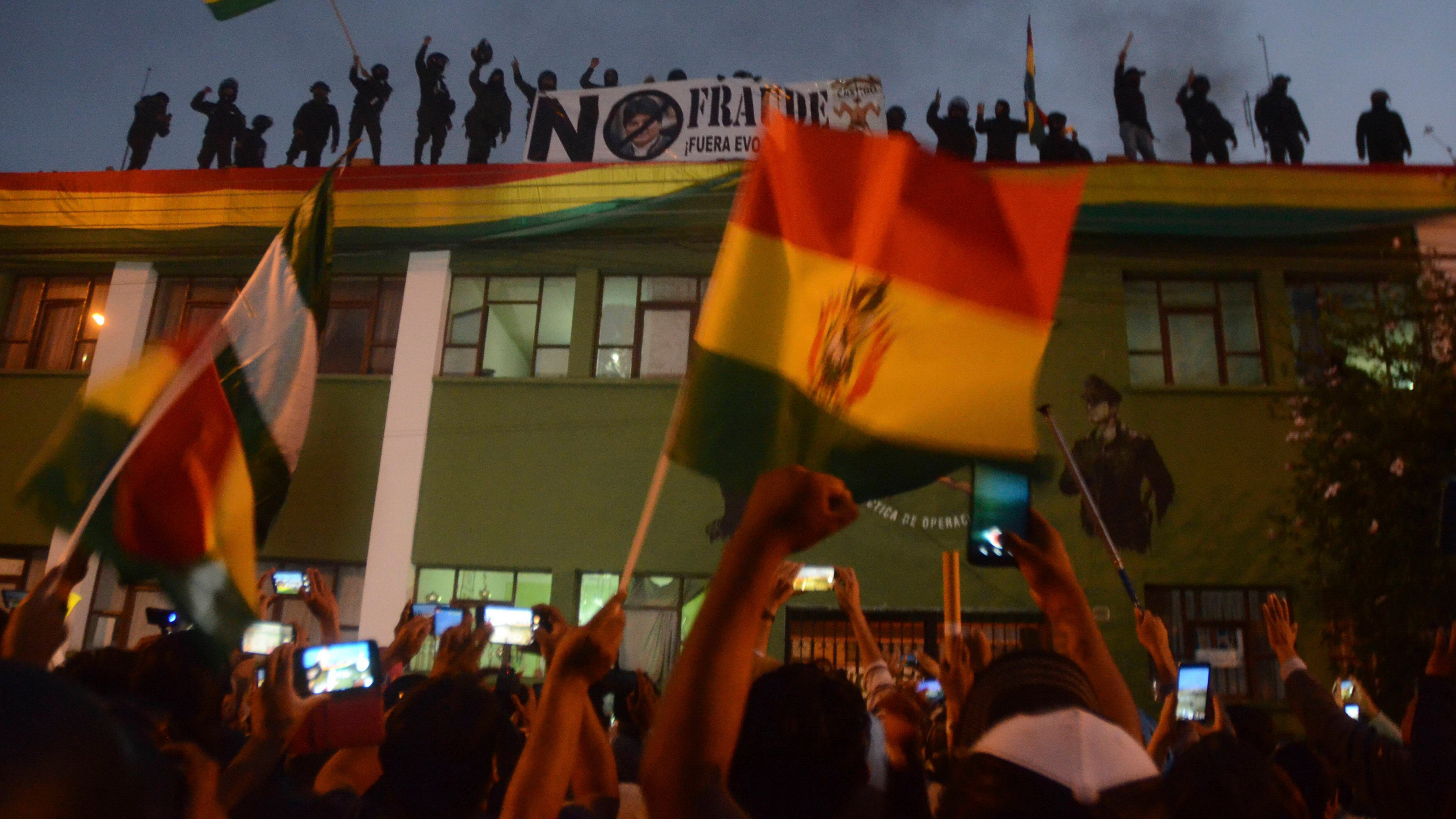 Minutos después, policías de Santa Cruz, un bastión opositor, colocaron un cartel en la fachada de su cuartel anunciando que estaban amotinados.