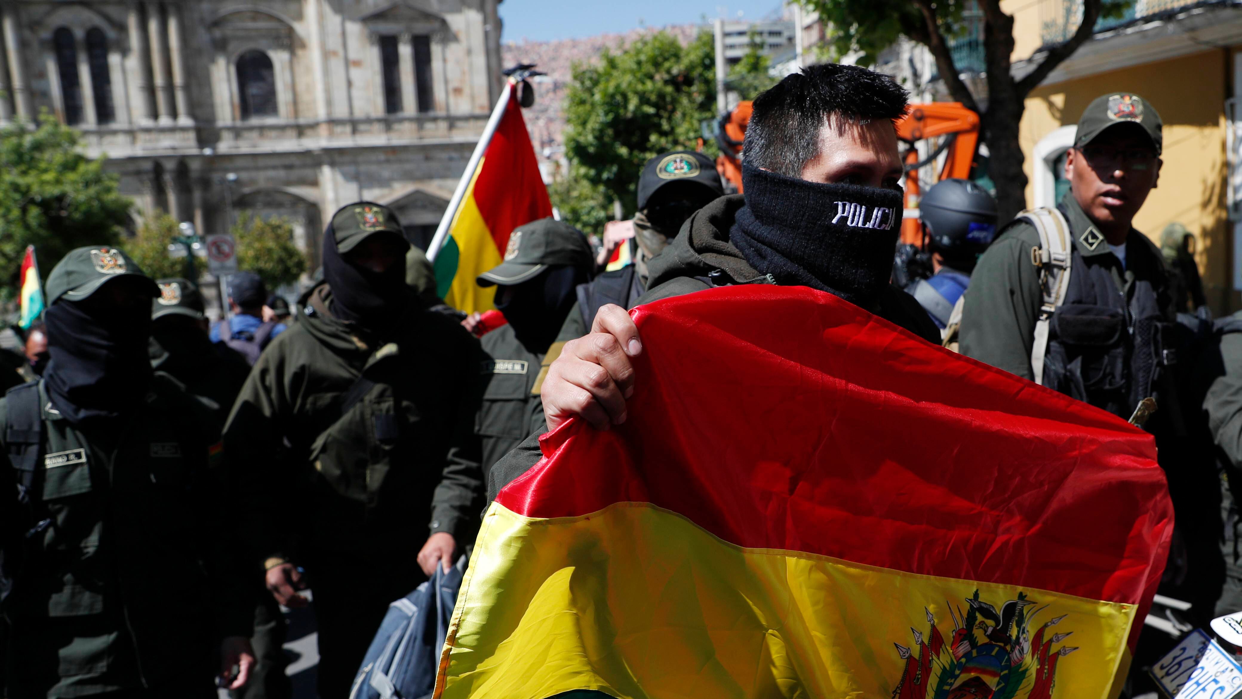 Policías que custodian los exteriores del palacio presidencial en La Paz se replegaron el sábado a sus cuarteles y los manifestantes ingresaron pacíficamente hasta las puertas de la casa de gobierno en medio de una crisis policial que estalló la víspera. El presidente Evo Morales no estaba en su despacho.