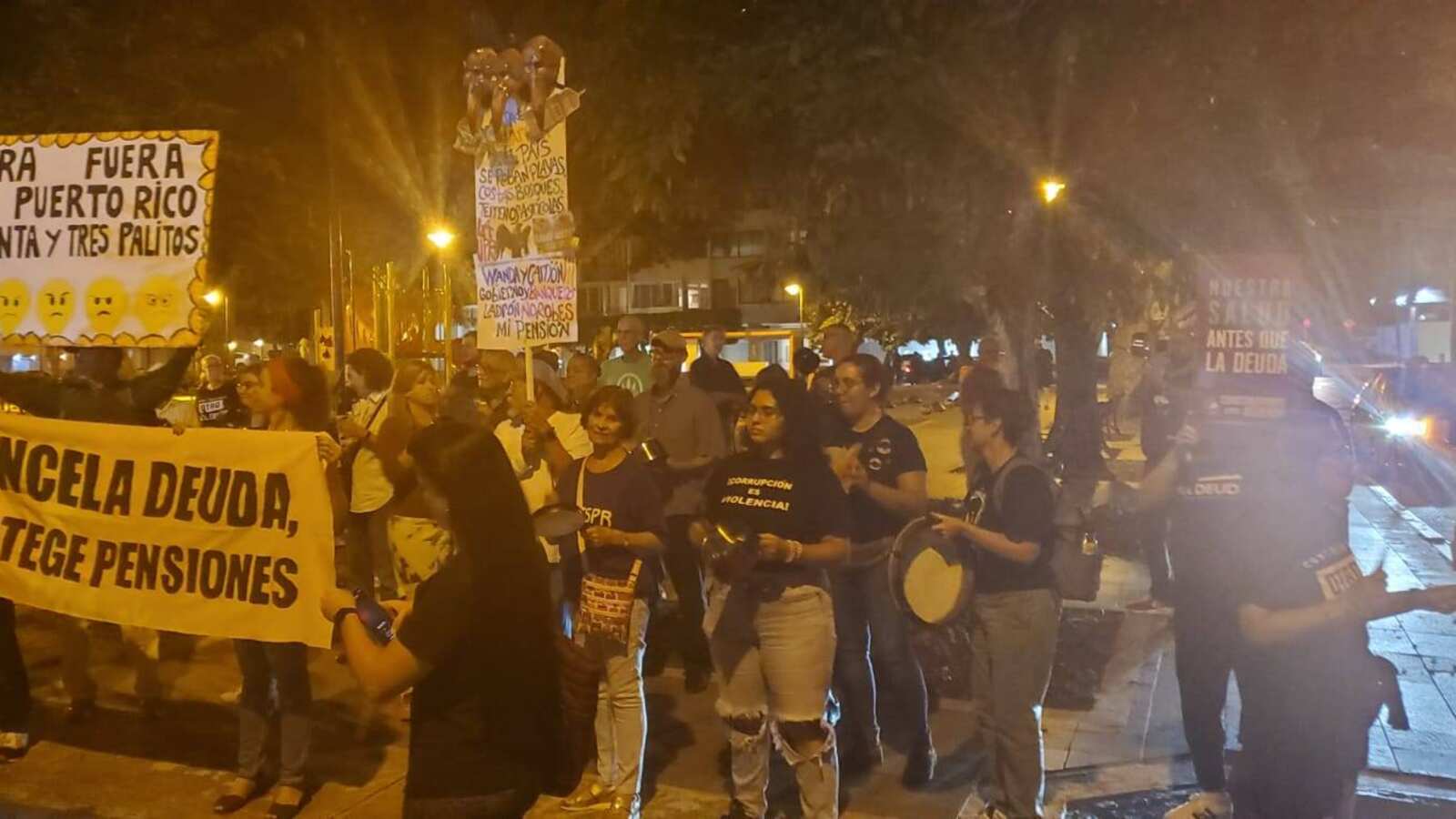 “Volvemos con este tercer cacerolazo en contra de los recortes a las pensiones y al aumento en la factura de luz que propone la Junta para pagarle a sus amigos bonistas de la Autoridad de Energía Eléctrica (AEE) y del Gobierno Central. En Puerto Rico hay cientos de miles de familias viviendo de cheque a cheque, no permitiremos que la Junta de Control Fiscal y la Gobernadora nos aumenten la factura de la AEE y recorten las pensiones para pagar a los bonistas”, explicó en declaraciones escritas Sonia Palacios, pensionada y portavoz de la campaña Construyamos Otro Acuerdo.