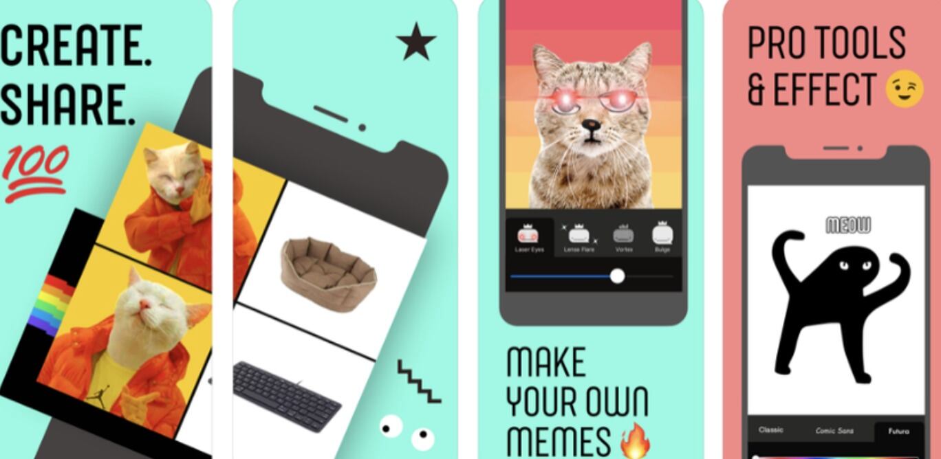 Una vez que elija una foto, puede agregar texto y varios efectos, emoji, pegatinas y otras travesuras relacionadas con memes. Cuando haya terminado, puede guardar sus memes recién creados y / o compartirlos en las redes sociales.