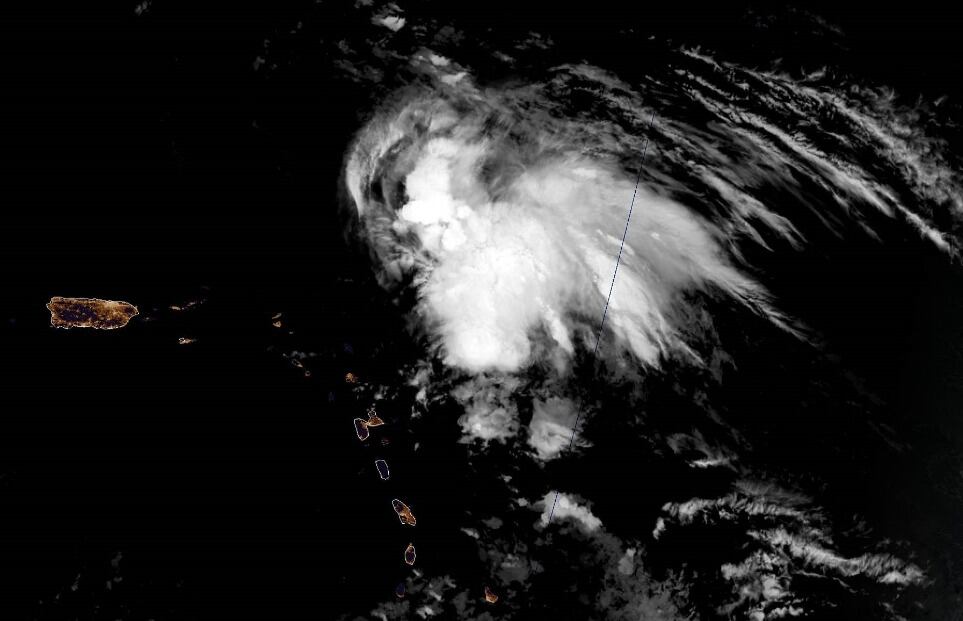 El ojo de la tormenta está a unos 378 kilómetros (235 millas) al noreste de las Islas de Barlovento y avanza en dirección noroeste a 12,9 km/h (8 mph).