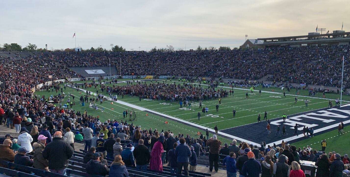 Decenas de estudiantes de las Universidades de Yale y Harvard protestaron hoy en medio de un partido de fútbol de ambas instituciones para reclamar atención sobre la deuda de Puerto Rico y acciones por el cambio climático.