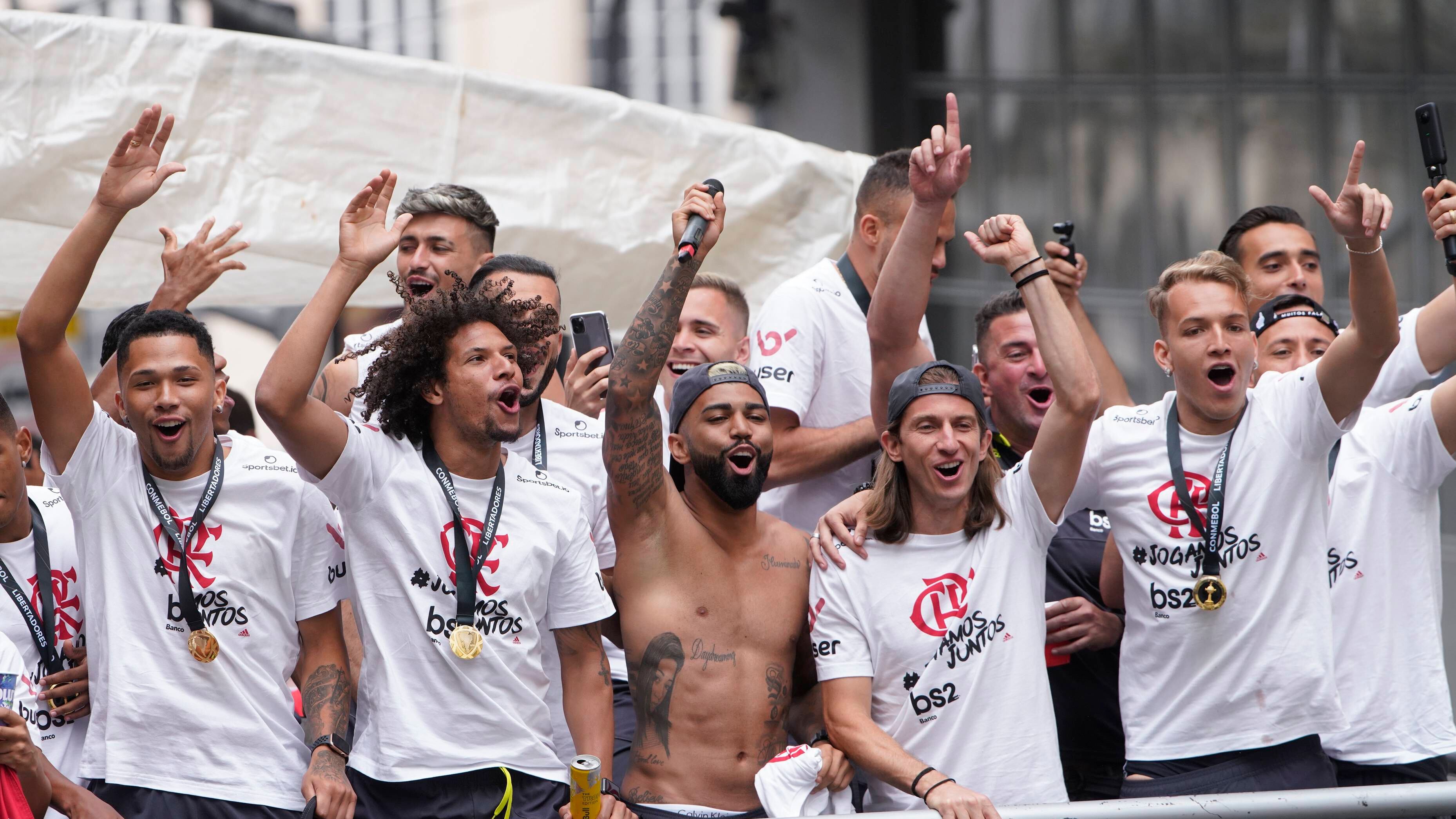 Decenas de miles de aficionados eufóricos que vestían la camiseta color rojo y negro del equipo inundaron las calles del centro histórico de Río de Janeiro para recibir a los jugadores del equipo.