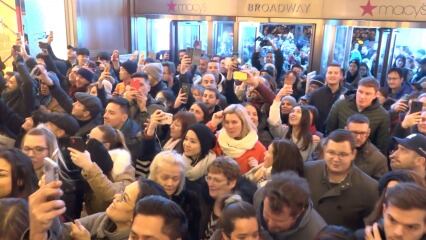 En las imágenes se puede ver como los trabajadores de la tienda daban la bienvenida con aplausos a la multitud, mientras entraba al edificio de la tienda de departamentos.