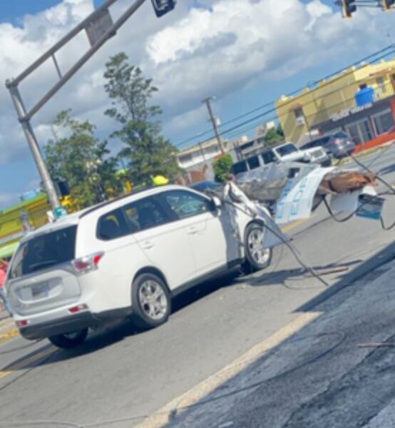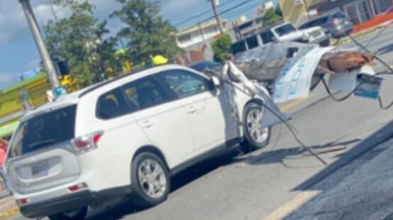 Un poste cayó sobre la parte frontal de un vehículo que pasaba por la Calle Mayagüez en San Juan.