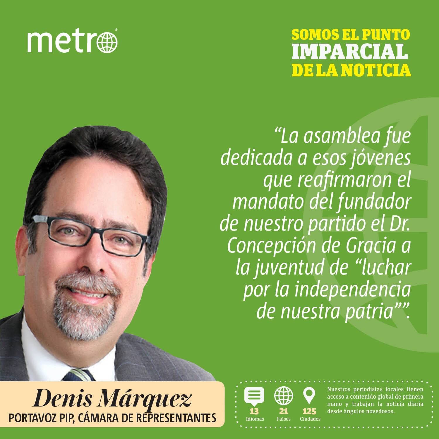 El pasado 1.o de diciembre, el Partido Independentista Puertorriqueño celebró en Ponce una grandiosa asamblea general. Allí, reunidos, se ratificaron las candidaturas nacionales como la de quien fuera candidato a la alcaldía de San Juan en 2012 y pediatra de profesión, Luis Roberto Piñero, a la comisaría residente en Washington. La vicepresidenta y ex comisionada electoral, María de Lourdes Santiago, al Senado por acumulación, junto a mí, que fui honrado nuevamente como candidato a representante por acumulación. El senador Juan Dalmau Ramírez será nuestro candidato a la gobernación.