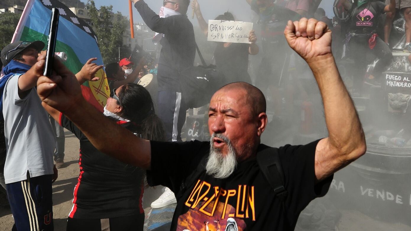 Los manifestantes empezaron a reunirse a media tarde y crecieron en número al atardecer con personas de todas las edades que agitaban banderas nacionales y mapuches, la etnia originaria de Chile que resistió por 300 años a los conquistadores españoles.