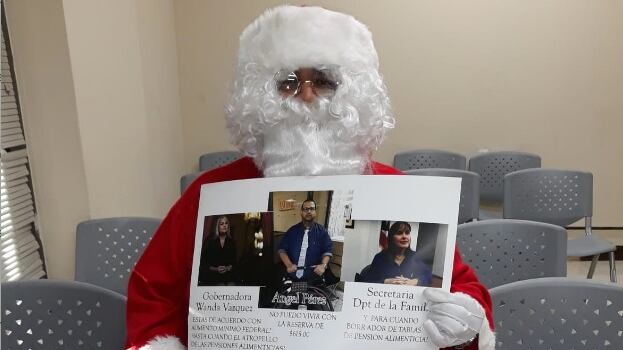 Pérez, quien está disfrazado de Santa Claus, ha realizado varias protestas en reclamo a que se verifiquen las tablas de pensión.