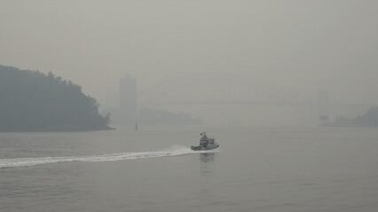 Las imágenes muestran una gruesa capa de humo sobre Sídney con una mala visibilidad récord, haciendo que lugares famosos como el puente del Puerto y la Ópera de Sídney no pudieran verse desde unos pocos cientos de metros de distancia. Muchos ferries también fueron cancelados debido a la baja visibilidad.