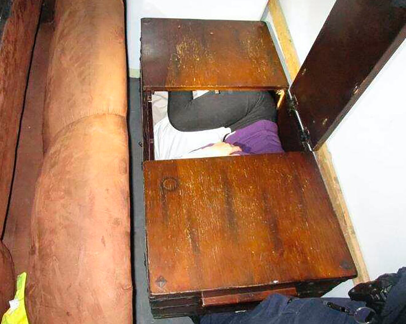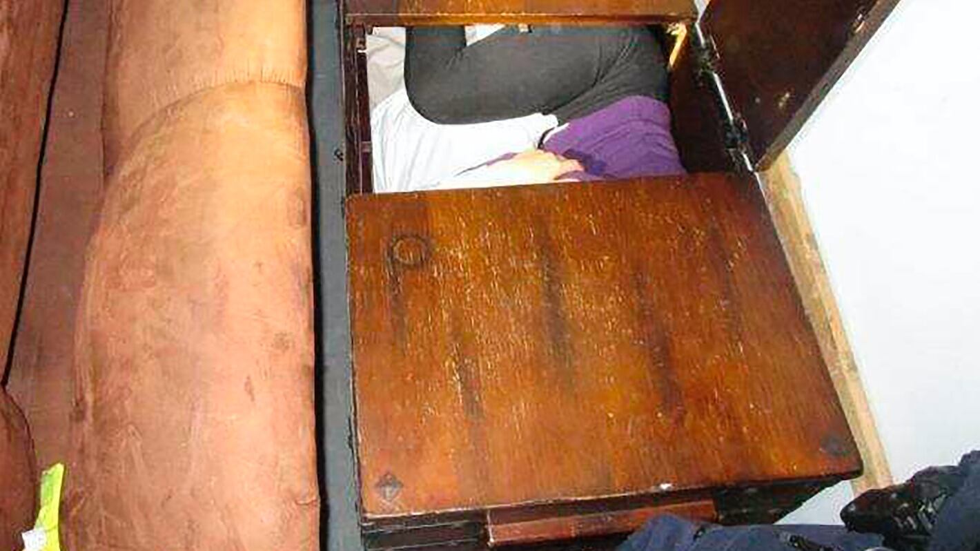 Al menos una persona estaba metida dentro de una lavadora y otra estaba acurrucada dentro de un cofre de madera, según fotos proporcionadas el lunes por el Servicio de Control de Inmigración y Aduanas de Estados Unidos (ICE por sus siglas en inglés).