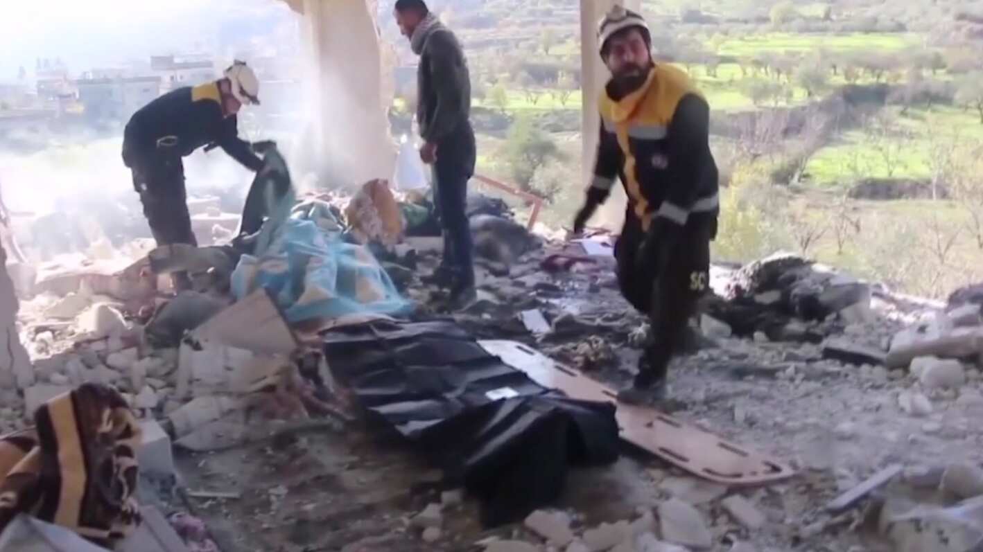 Según el Observatorio Sirio para los Derechos Humanos, un grupo que monitorea la guerra desde Gran Bretaña, el bombardeo en Bdama mató a la esposa y tres hijas de un socorrista de la Defensa Civil Siria, conocida como los Cascos Blancos.