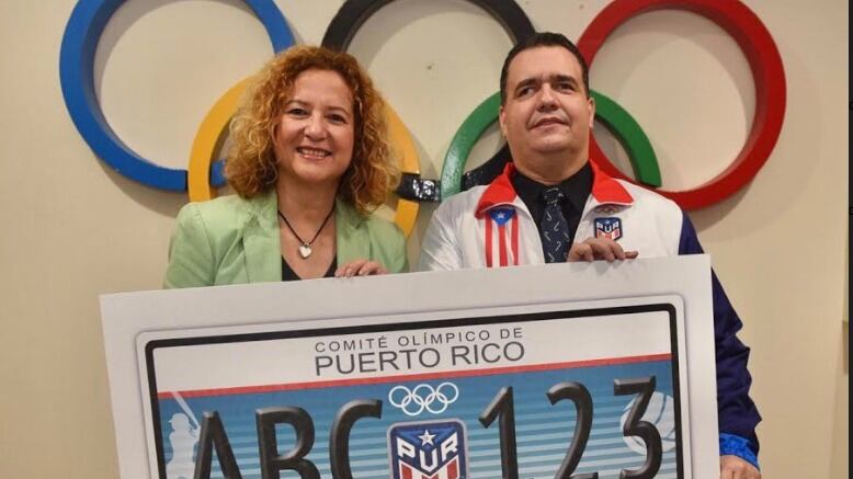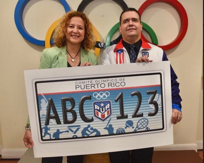 El secretario de Transportación y Obras Públicas, Ing. Carlos M. Contreras Aponte, y la presidenta del Comité Olímpico de Puerto Rico (COPUR), Sara Rosario Vélez, presentaron hoy la tablilla conmemorativa del COPUR, disponible en los Centros de Servicios al Conductor (CESCO) y con cuya adquisición los dueños de vehículos estarán apoyando económicamente a varias entidades deportivas en la isla.