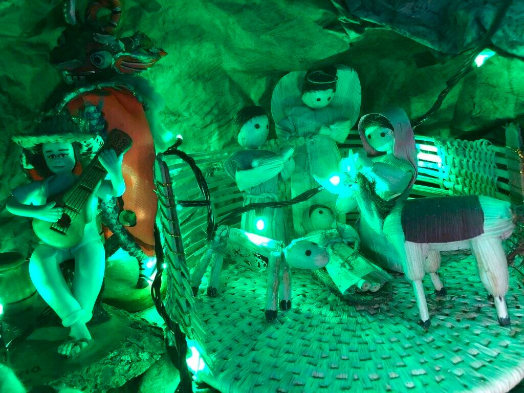 Hay un nacimiento en una isla del mítico lago inca Titicaca donde la virgen María y San José tienen trajes típicos de esta zona del Altiplano que comparten Perú y Bolivia. El niño Jesús, afectado por las bajas temperaturas de esta zona, tirita en su pesebre rodeado de llamas y alpacas.