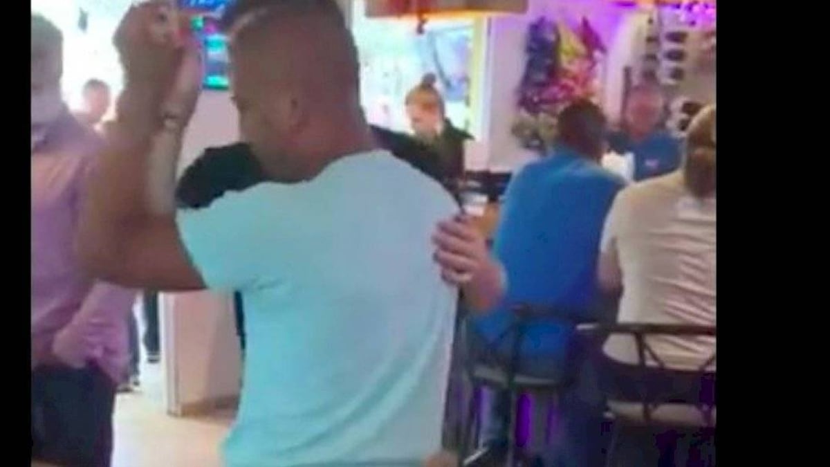El periodista estadounidense David Begnaud compartió el vídeo del momento en el que la pareja de hombres bailaba, quienes fueron detenidos por un empleado que les dijo: “Heterosexuales pueden bailar, no un hombre con otro hombre”.
