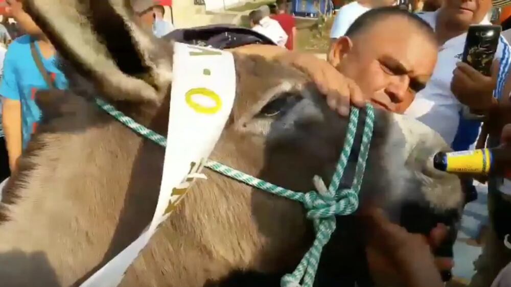 En redes sociales causó indignación el maltrato que sufre un burro a manos de una mujer que lo hizo “beber” una cerveza por la nariz como premio por haber ganado una carrera, este hecho ocurrió en Colombia dentro del ‘Festival del mango’ hace algunos días.